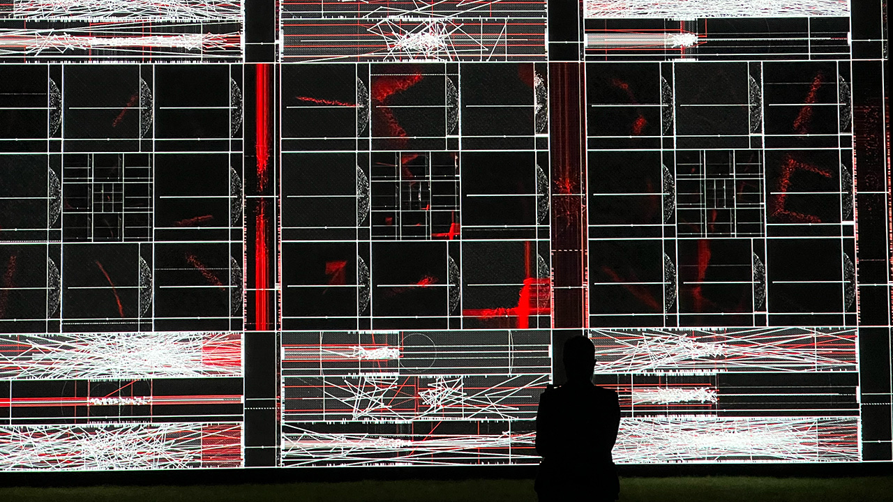 Conceptually, dynamic light statics explores how immaterial information can transform into perceptual experience through recursive reflection. The work builds a system that simultaneously produces and observes its own data, visualizing a form that exists through the act of self-observation.