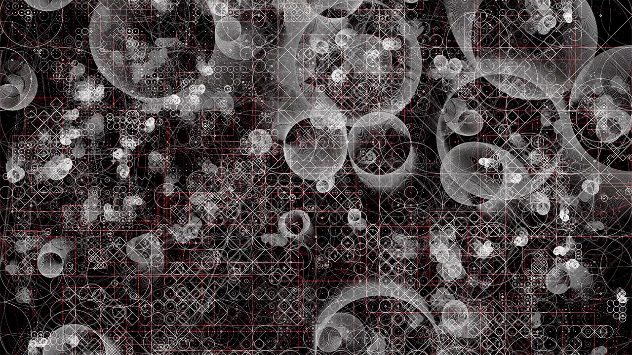 Homogeneous patterns, shapes, and structures undergo dynamic, continuous, and autonomous transformations within areas of regularity that are irregularly generated.